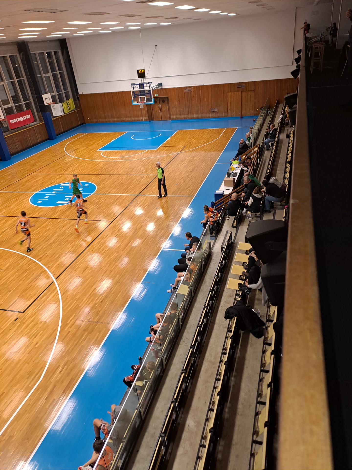 Já budu každou halu hodnotit od 0 do 10. Hale Morendě dávám 7 bodů za novou protiskluzovou palubovku a za nastavitelné koše. Taky bych vyzdvihl elektronickou číselnou tabuli na zápasy. Hala ztrácí 3 body kvůli starým sedačkám na tribuně a to, že v zimě by se do haly hodilo zateplování a v létě zase svítí slunce přes okna a odráží se od palubovky